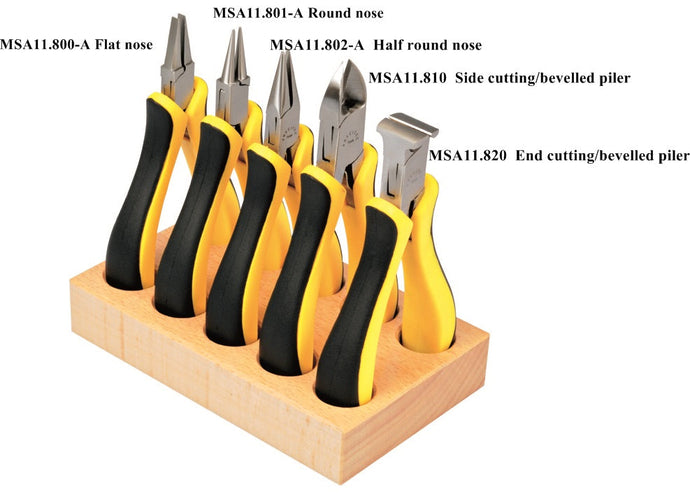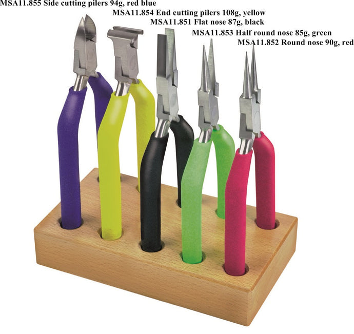 PLIERS SET OF 5 140MM ON WOODEN BASE