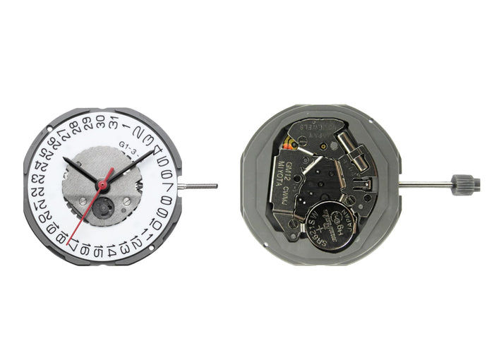 MOVEMENT MIYOTA GM12, SIZE 10 1/2''', 3 HANDS, STANDARD HAND HEIGHT, DATE AT 3