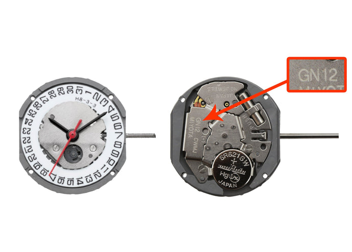 MOVEMENT MIYOTA GN12, SIZE 8 3/4''', 3 HANDS, STANDARD HAND HEIGHT, DATE AT 6